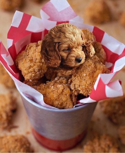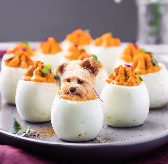 В мире мало вещей, настолько же хороших, как собаки и еда. Instagram-аккаунт @dogs_infood посвящен и тому, и другому. Там публикуются обработанные при помощи фоторедакторов снимки собачек, вплетенных в аппетитные блюда.