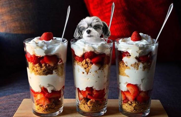 Неизвестные создатели аккаунта поняли, что фотографиями с изысканной едой в ресторане или вкусными десертами на фоне роскошных пейзажей уже никого не удивишь. В связи с этим они решили добавить изюминки таким фотографиям и стали «дорисовывать» к еде лица собак самых разных пород. Так, померанский шпиц превращается в шарик мороженого, а мопс — в печенье с шоколадной крошкой.