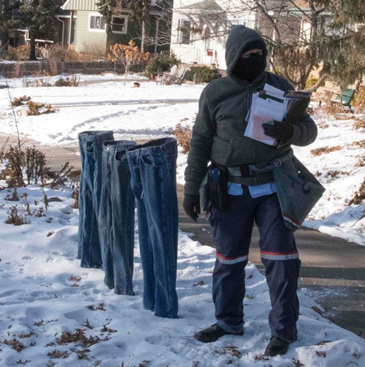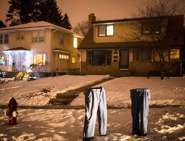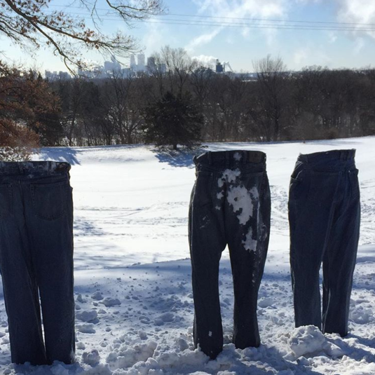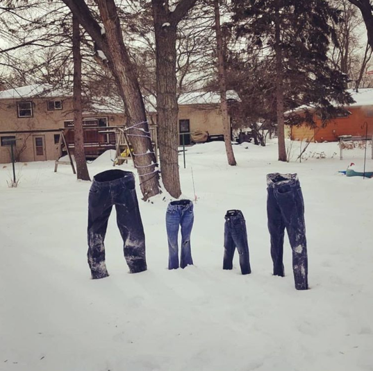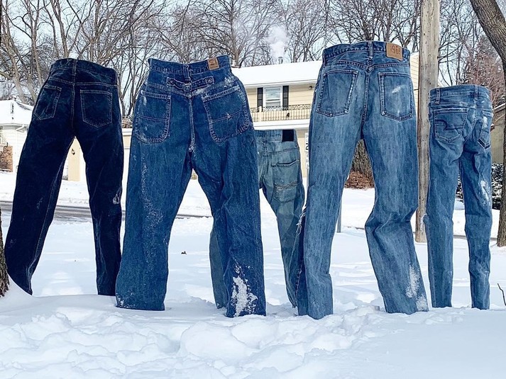 Участники челленджа выставляют на улицу в мороз мокрые штаны или джинсы, которые затем быстро замерзают и начинают буквально стоять, принимая интересные формы.