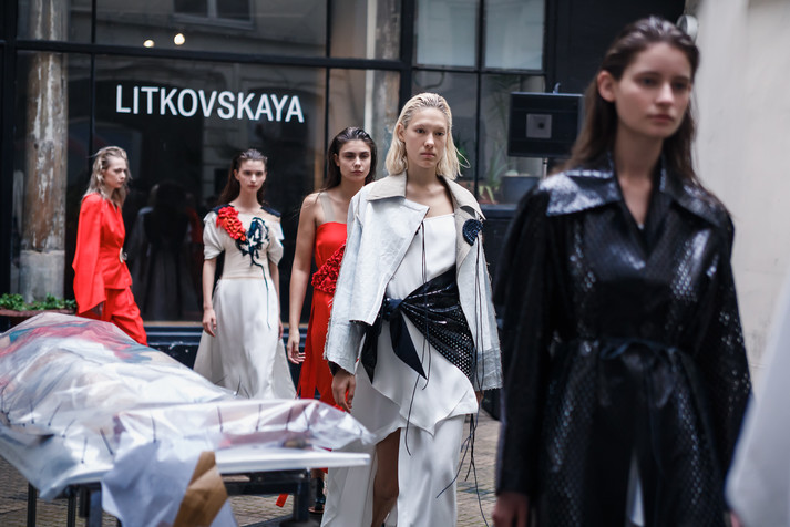Стартовой точкой шоу стала инсталляция Алены Гаджиловой – художника постановщика всех клипов Алана Бадоева. Первое, что видел каждый входящий на презентацию гость — паталогоанатомический стол, на котором на протяжении четырех часов лежала обнаженная рыжеволосая модель в целлофановом коконе. Форменное безумие обретает смысл после знакомства с идеей коллекции, ставшей трибьютом Литковской творчеству кинорежиссера Дэвида Линча.