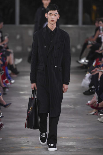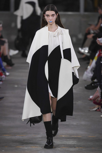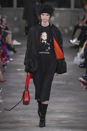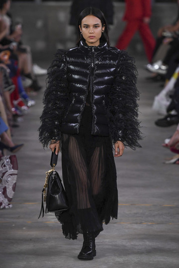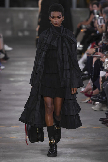 Параллелями для итальянца стали архитектурные формы - прекрасные в своей простоте, а также урбанизация, которая одинаково сильно влияет и на западный мир, и на восточный. Вместе с разнообразными накидками и платьями длины миди Пиччолли показал публике сочетания вроде джинсовок и юбок-плиссе, функциональные ветровки, дутые куртки, украшенные V-логотипом и разнообразие практичных ботинок на шнуровке.