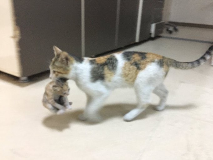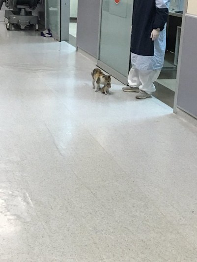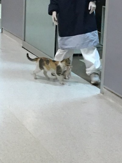 Об этом рассказала у себя в Твиттере художница Мерве Озджан. Девушка как раз была в одном из отделении скорой помощи Стамбула, когда туда пришла мама-кошка со своим ребенком.