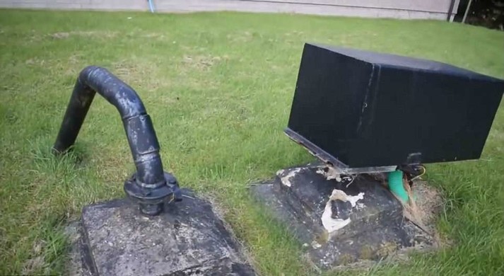Построен бункер был в годы холодной войны. На поверхности расположение бункера можно определить только по черной трубе и ящику.