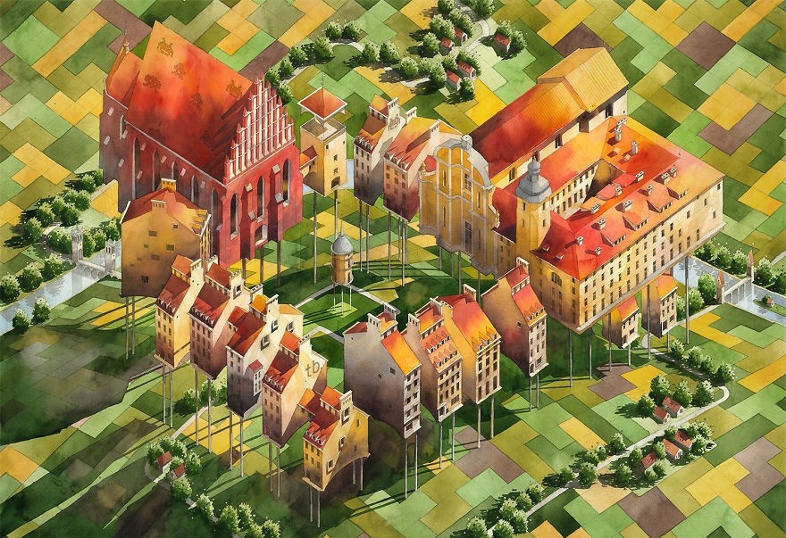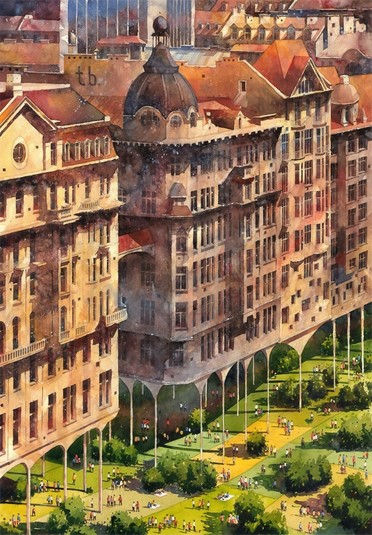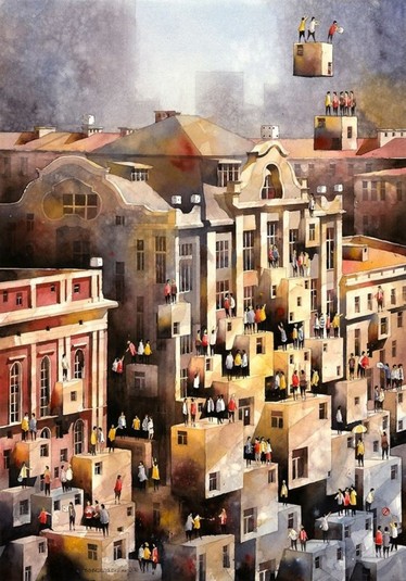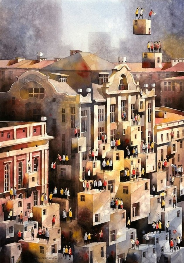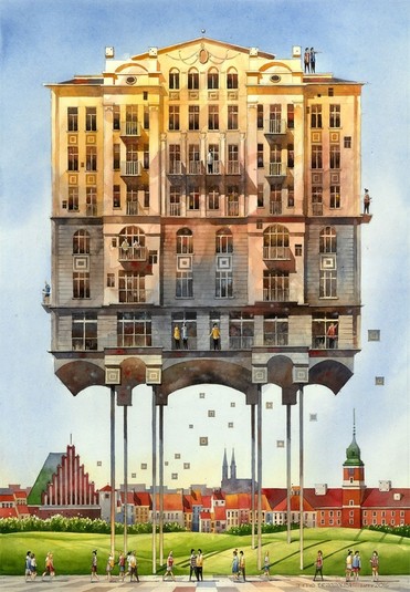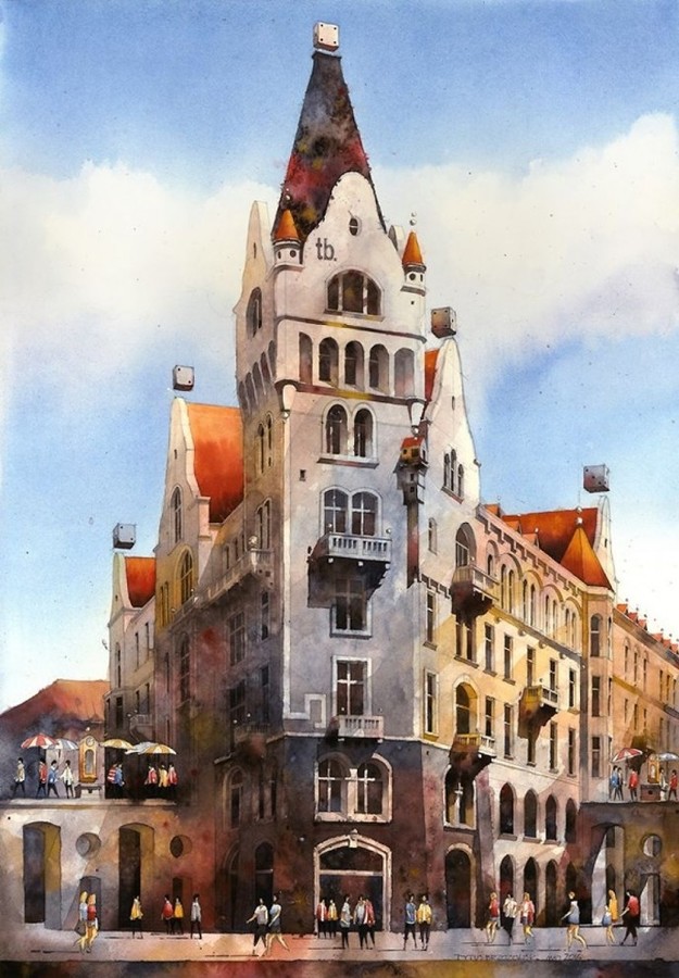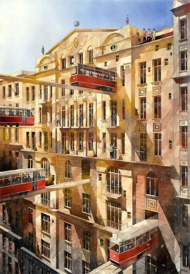 Удивительные акварели Титуса Бжозовского, гармонично сочетающие в себе прошлое и настоящее, – это попытка воссоздать очарование старой Варшавы и переосмыслить её облик сквозь призму сюрреализма.