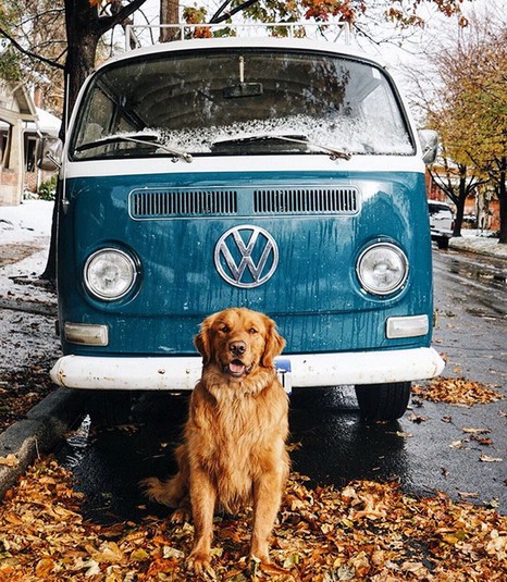 Компанию Хантеру составили его возлюбленная и четвероногий друг - золотистый ретривер по кличке Аспен.