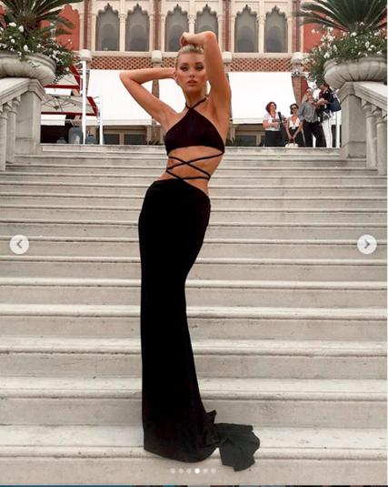 Шведская модель Эльза Хоск выглядела очаровательно в черном платье из коллекции Etro с завязками на животе, подчеркнув свою стройную талию. А plus-size модель Барбара Палвин подготовила идеальный образ в голливудском стиле: роскошное черное платье от Giorgio Armani, локоны и легкий макияж.