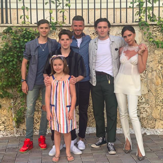 Она опубликовала снимок, на котором предстали сыновья Бруклин, Ромео и Круз, а также их сестра и единственная дочь звездных родителей Харпер.