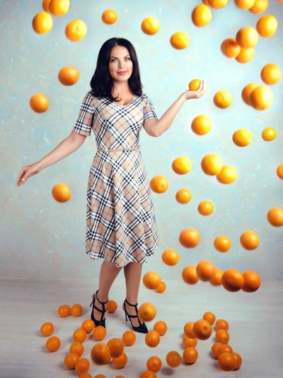«Осенне-зимняя коллекция – это яркие цвета, особенная женственность, умение удивлять себя и окружающих, разнообразие красок и настроение. Именно поэтому и было решено провести фотосессию в апельсиновом кураже, - говорит Влада. - Яркие оранжевые фрукты напоминают маленькое солнце, и мне хотелось передать это тепло девушкам, которые будут носить эти платья».