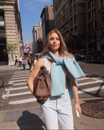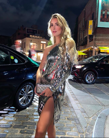 В этот раз Соня показала весьма необычное фото в вечернем образе. Для выхода в свет модель выбрала серебристое блестящее платье, декорированное пайетками, а в руках держит небольшой клатч в тон наряду. Волосы девушки распущены в красивой укладке, а на ее лице легкий макияж, она мечтательно смотрит куда-то вдаль, стоя в огнях ночного Нью-Йорка.