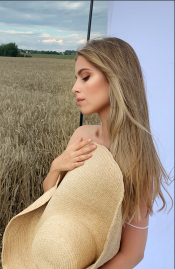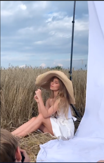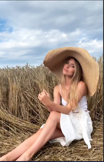 Так, София решила поделиться на instagram–страничке свежей порцией чувственных летних кадров в широкополой плетеной шляпе на поле среди колосков.
