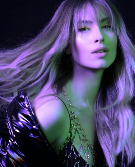 Ее волосы распущены и красиво уложены, а на лице яркий макияж, она томно смотрит в камеру и вся подсвечена неоновым светом голубого оттенка. В подписи к кадру Соня написала: «Скоро появится новый сингл».