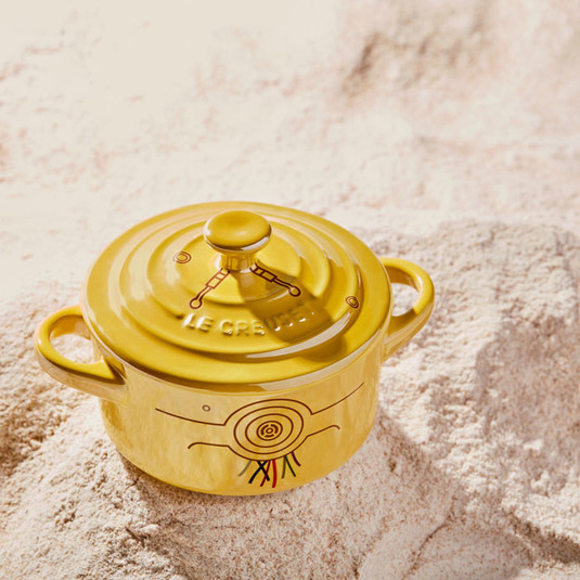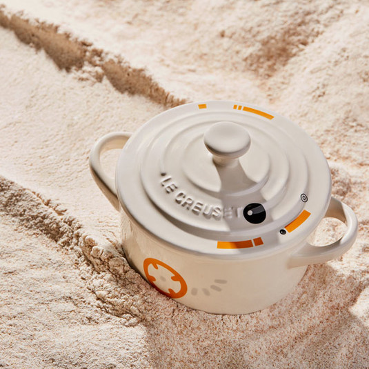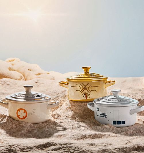 Роботы R2-D2, C-3PO и BB-8 изображены в виде небольших кастрюль Mini Cocottes по $30 долларов каждая, которые можно использовать для приготовления меньших блюд.