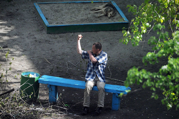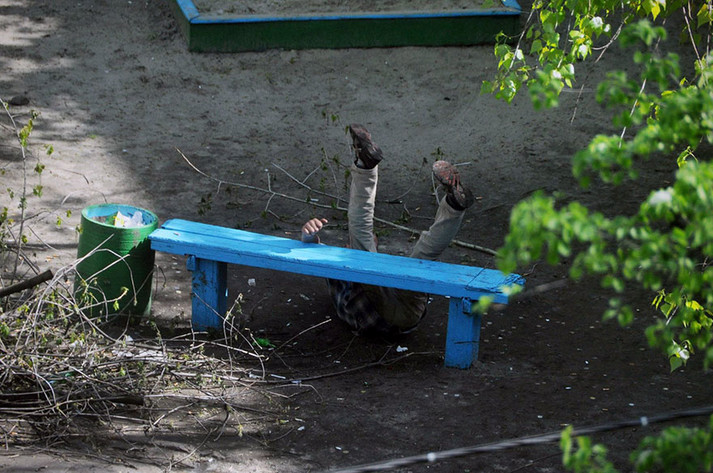 Героями этих снимков стали пенсионеры, молодежь, пьяницы, милиционеры и обычные прохожие. С годами краска на скамейке меняется, однако поведение уличных персонажей остается неизменным.