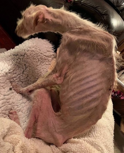 На собаке породы лерчер (помесь борзой с терьером) практически не было шерсти, и все ее кости легко можно было пересчитать под кожей. Собака была в таком плачевном состоянии, что работники приюта BARK (Berwick Animal Rescue Kennels) были в шоке, рассказала изданию DailyMail менеджер приюта Йен Росс: