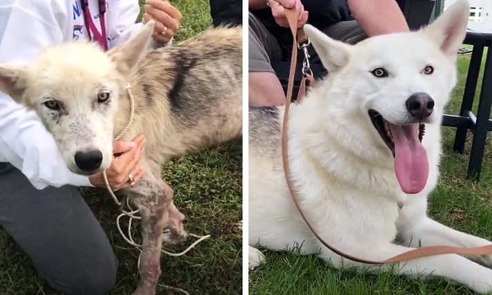 За преображениями животных всегда приятно смотреть, особенно если это истории с хорошим концом, где все счастливы, и у бедняги наконец-то появляются любящие хозяева. Так произошло и с хаски по имени Финн: его хозяин купил собаку в качестве подарка своей жене, но позже они развелись. Мужчина решил отыграться на Финне, из-за чего пес страшно похудел. Но волонтеры спасли собаку, откормили его и превратили в настоящего красавца!