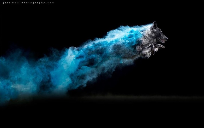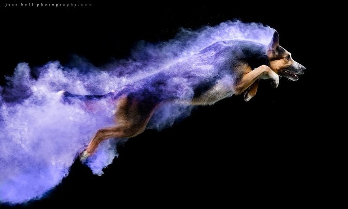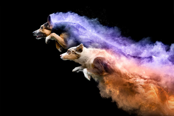 Для большей выразительности фотограф использовала цветной порошок, который подчеркивал динамичные движения собак, придавая им вид яркого вихря. Эффект получился по-настоящему волшебным и для этого ему не пришлось использовать фотошоп.
