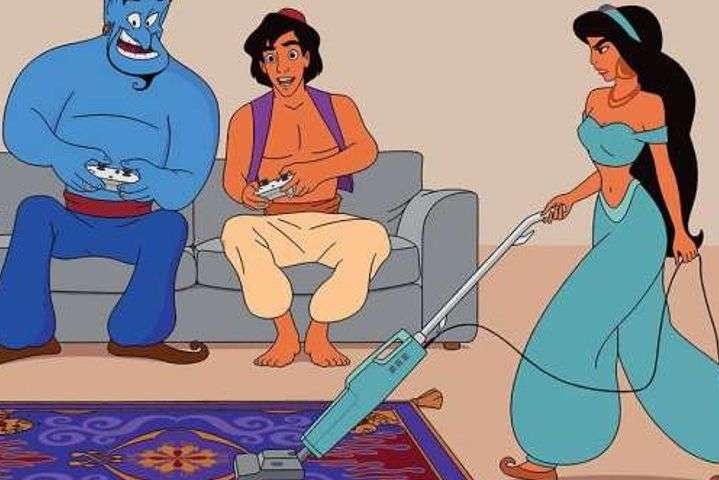 Волшебные ковры тоже нужно чистить: художник перенес диснеевских персонажей в 2018 год