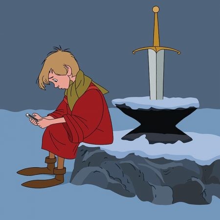 Но самый любимый сюжет, по признанию художника, — это современный поворот сюжета мультфильма «Меч в камне» и его главный герой Артур, который слишком залип в телефон вместо того, чтобы реализовать свой потенциал.