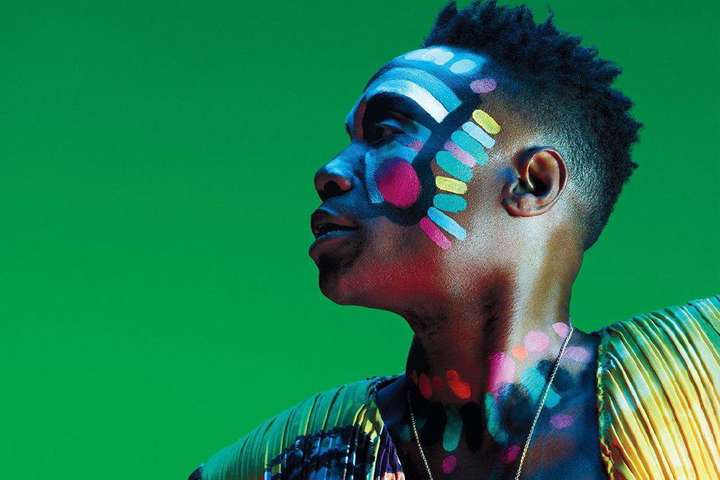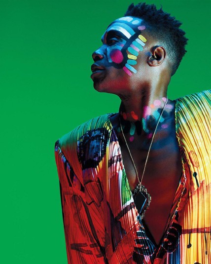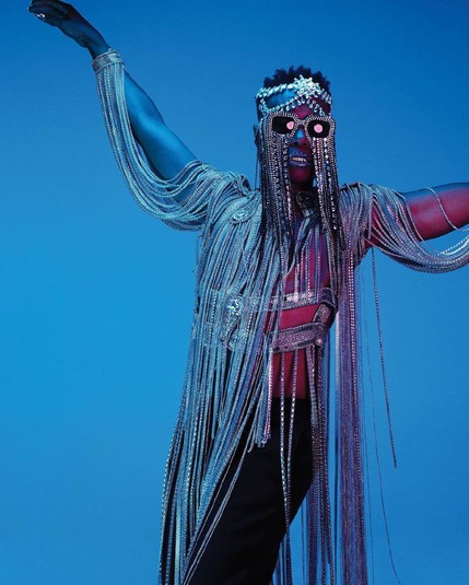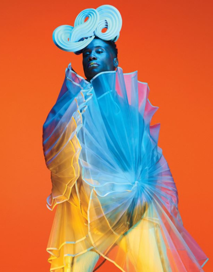 Фотограф придумал для Портера сложные образы, включающие в себя не только макияж, но и объемные аппликации из цветных геометрических фигур