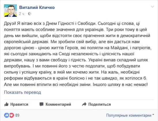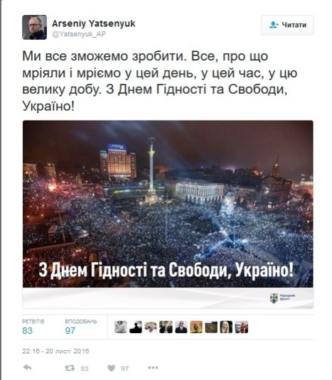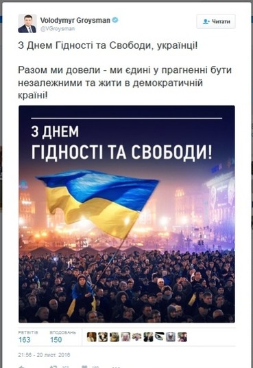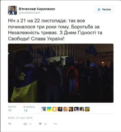 Сегодня Украина отмечает День достоинства и cвободы. В сети всё больше и больше постов посвященных этой дате. Одни считают эту дату праздничной, другие скорбят по погибшим во время революции.
