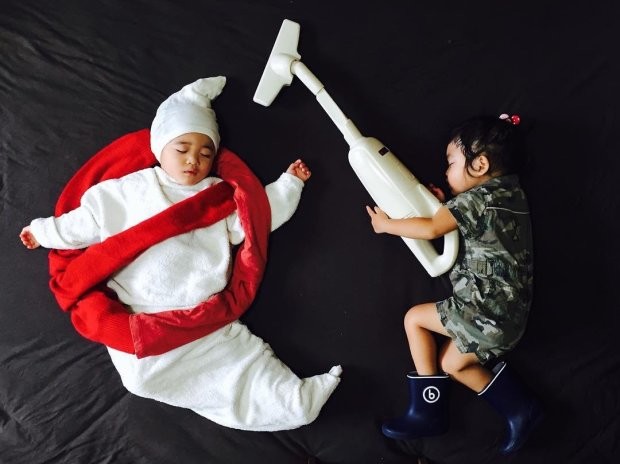 Аюми Омори (Ayumi Omori) из Японии переодевает и перекладывает спящих близнецов таким образом, чтобы они показывали определенную тематическую сценку и в результате получаются смешные композиции.
