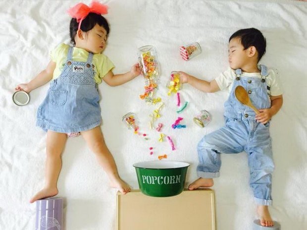 Аюми создала целую серию креативных фотографий, которую назвала «Приключения близнецов». Эти дети во сне попадают в очень забавные и интересные ситуации.