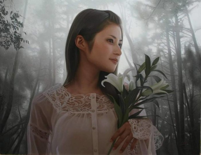 Многие поговаривают о том, что все свои картины художник создаёт при помощи графических редакторов и специальных программ. Но на самом деле это далеко не так. Используя масляные краски, он старательно прорисовывает каждую деталь, досконально выводя плавные линии, чтобы подчеркнуть изящный стан и красоту лица.