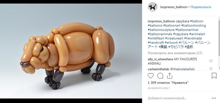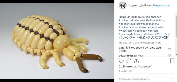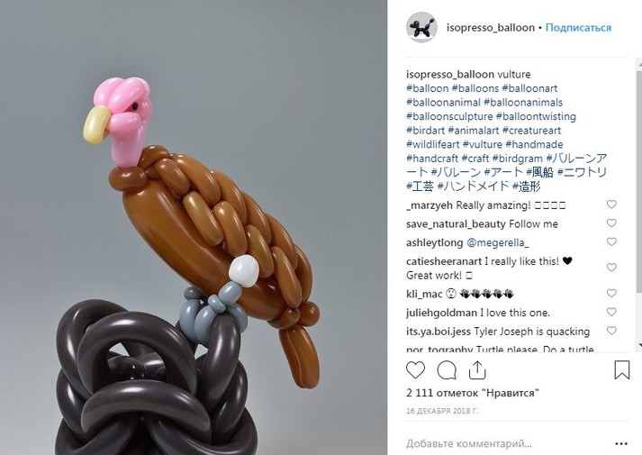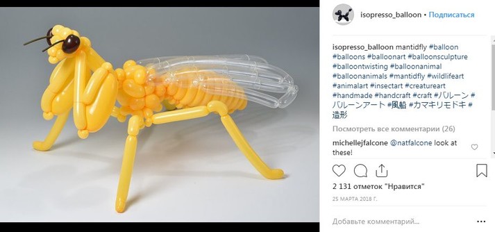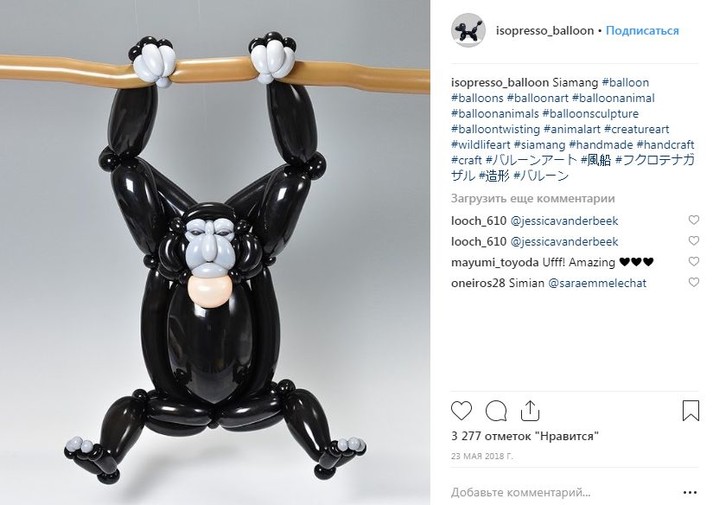 Японский художник создает животных из воздушных шаров. Результат впечатляет