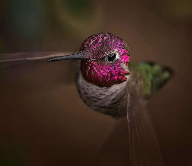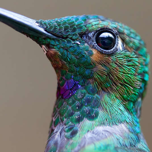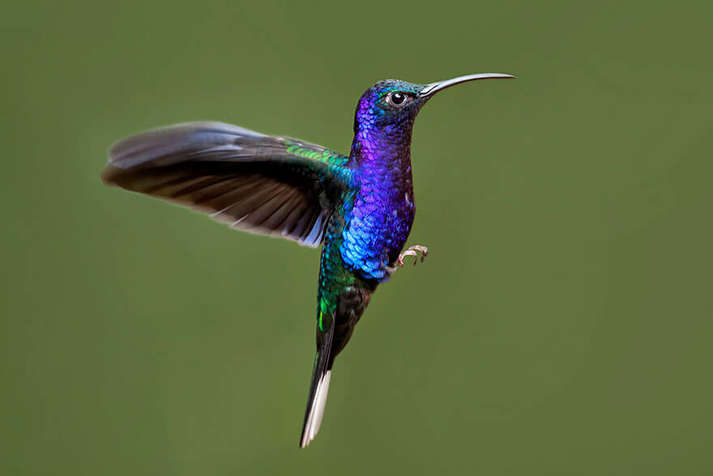 Самый крупный вид достигает величины 22 см. А самая маленькая птичка - всего лишь 6 см (от кончика хвоста до кончика клюва). Фотографировать этих птиц достаточно непросто, ведь некоторые виды колибри способны совершать до 100 взмахов крыла в секунду.