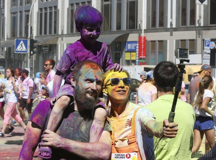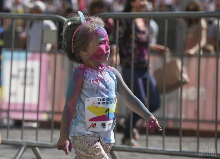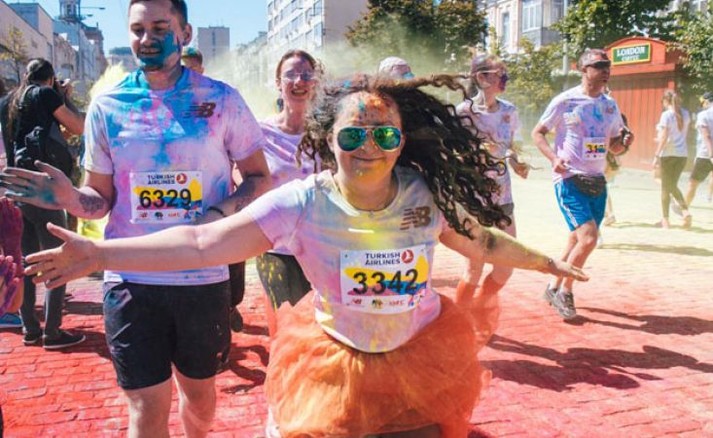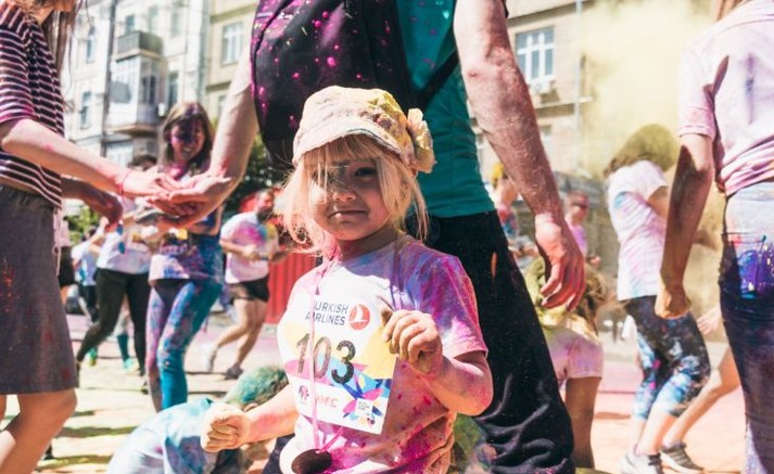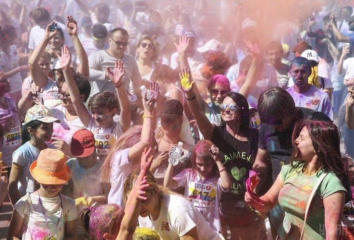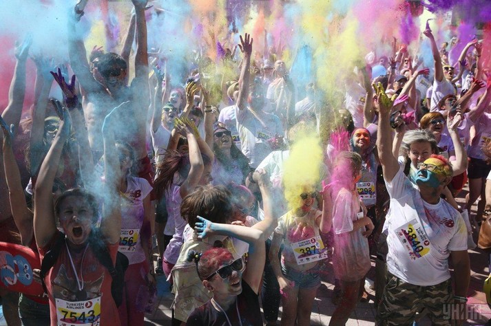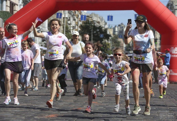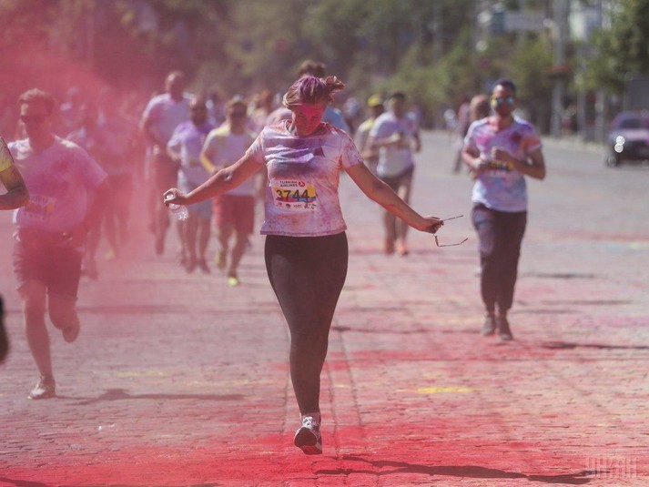 На следующий день столичный праздник красок продлился юбилейным, пятым красочным пробегом Kyiv Color Run.