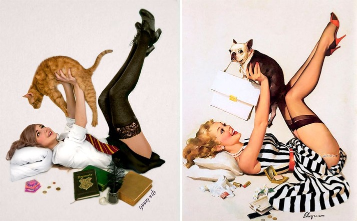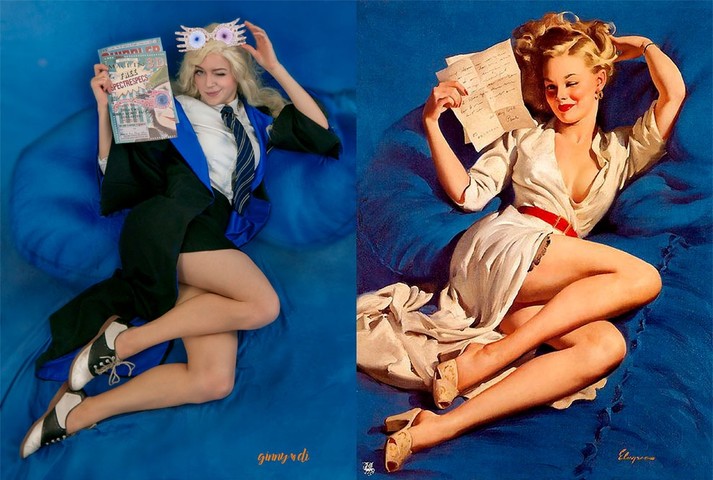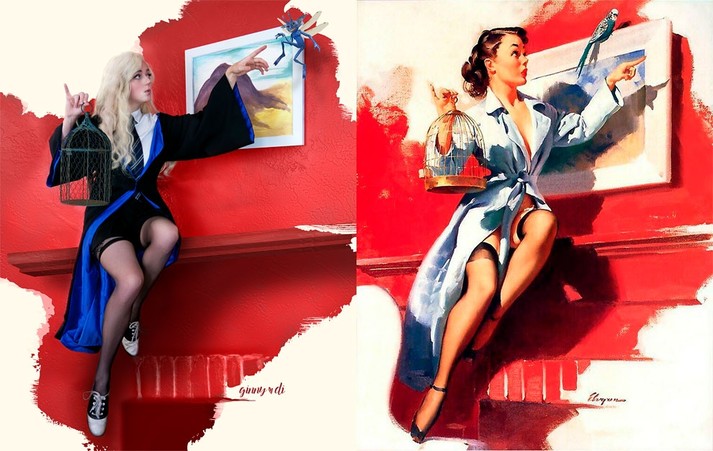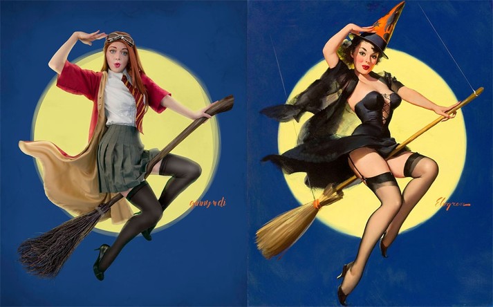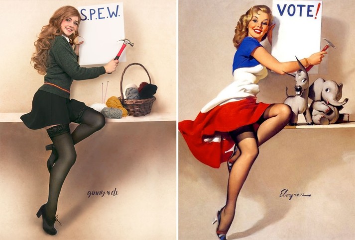Для проекта ко Дню святого Валентина Джинни соединила мир «Гарри Поттера» и знаковые картины своего любимого пин-ап-иллюстратора Джила Элвгрена.