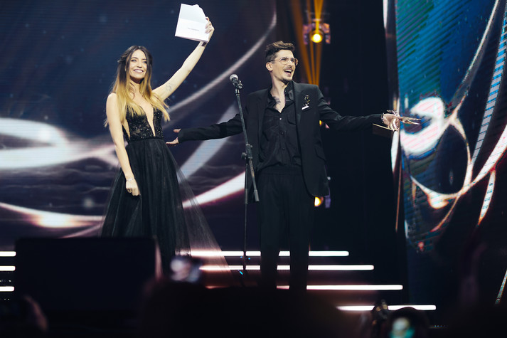 В номинации «Лучший дуэт» в этом году победили Дмитрий Шуров и Morphom с песней «На вершині». Дима, выходя получать статуэтку, пошутил, что он крайне часто оказывается на сцене этой премии именно в номинации «Лучший дуэт».