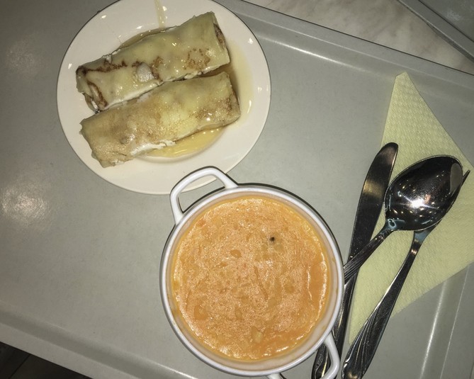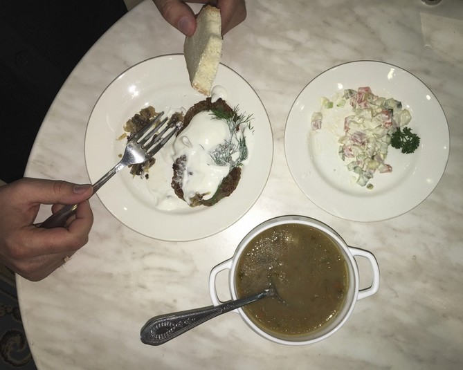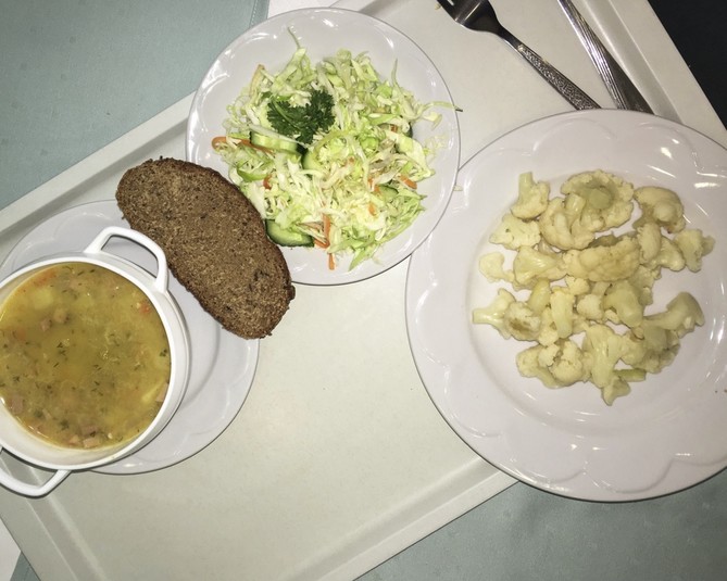 В столовой Верховной Рады снимать запрещено, таблички с предупреждением висят там на входной двери и у витрин с едой. Поэтому журналистка снимала на айфон со вспышкой.