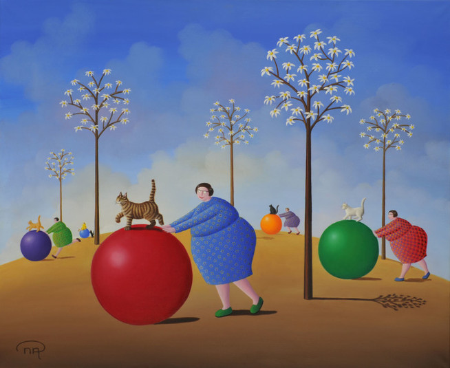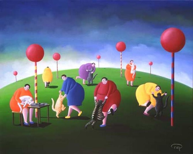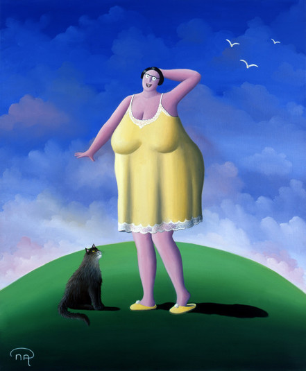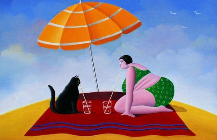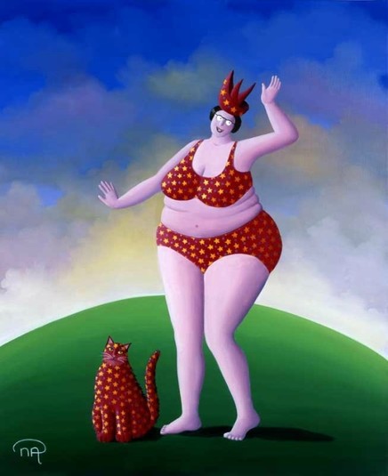 Забавные картины о жизни пышных дамочек и упитанных кошек покорили сеть