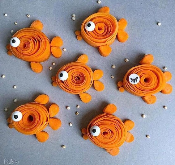 Креативная девушка работает, в основном, с овощами и фруктами. Она буквально оживляет вкусные продукты и превращает их в супер-милых персонажей. Каждая ее поделка - съедобное произведение искусства!