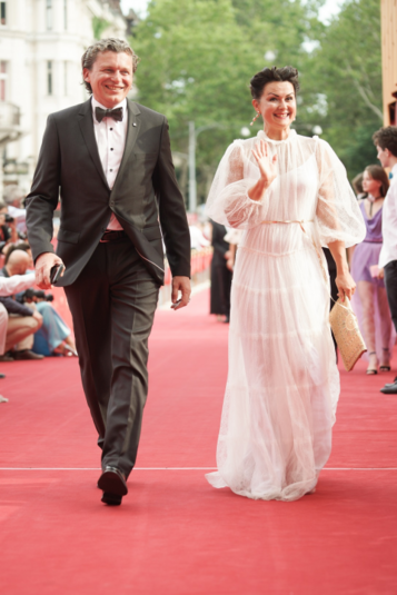 Она вышла на дорожку в брючном костюме, украшенном перьями. Кроме того, по алому бархату к Оперному прошлись Михаил Жванецкий, знаменитая теннисистка Элина Свитолина с бойфрендом, съемочная группа фильма «U311 Черкассы» и командир«Черкасс» капитан второго ранга Юрий Федаш.