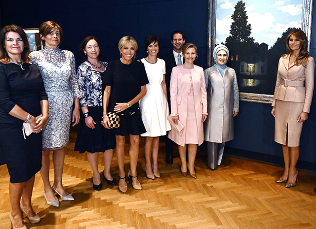Пока их мужья - президент США Дональд Трамп и глава Франции Эммануэль Макрон - жали друг другу руки в американском посольстве в Брюсселе, а затем вместе с другими главами государств участвовали в саммите Североатлантического альянса, НАТО, Мелания и Брижит проводили время в аполитичной атмосфере.