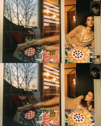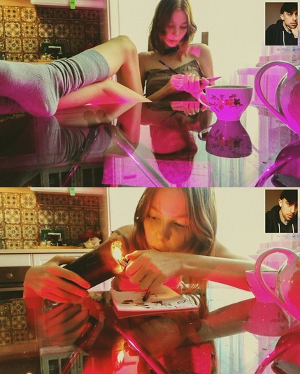 Альби проводит фотосессии, делая скриншоты на ноутбуке через программу для видеозвонков FaceTime. Модели в свою очередь позируют для него из своих домов. За прошедшую неделю художник поснимал итальянок Элис Пагани и Кьяру Шельси, а также россиянку Алину Бобылеву.