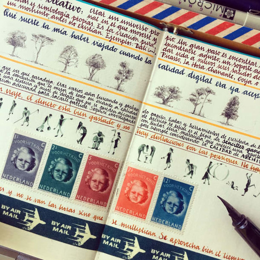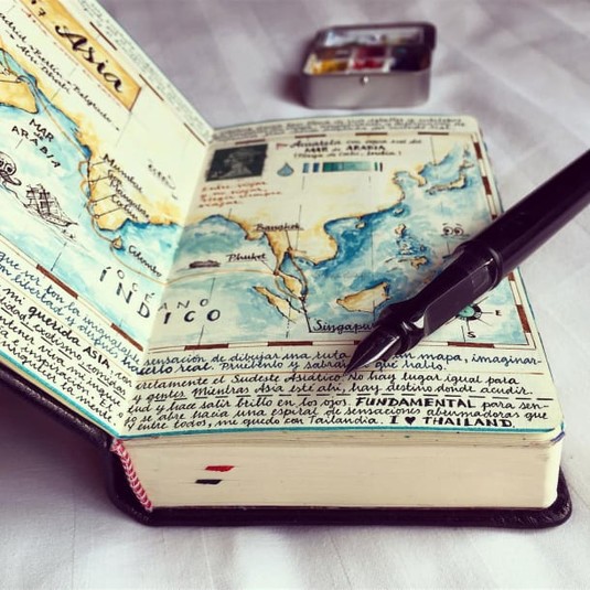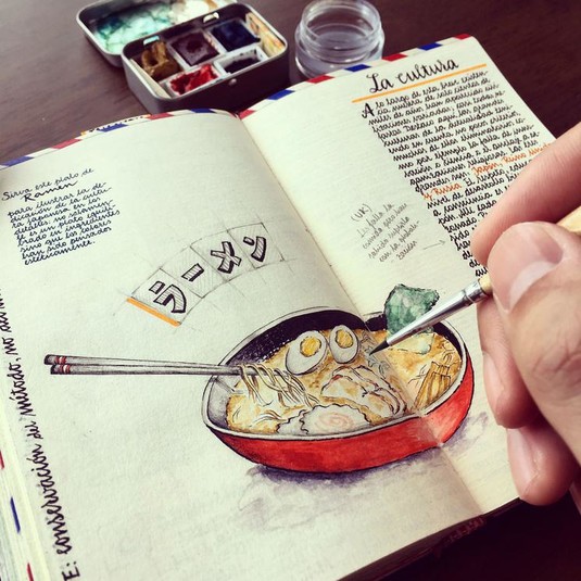 Необычные записные книжки испанского иллюстратора Хосе Наранха стали очень популярны в Инстаграм благодаря тому, что в них можно найти яркие рисунки и каллиграфические записи из путешествий по всему миру.