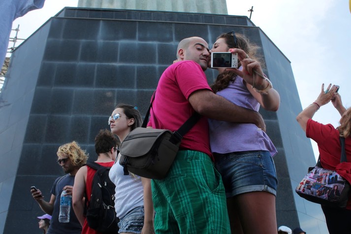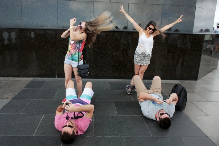 Фотокорреспондент Мария Плотникова отправилась на Олимпиаду в Рио и сняла, как гости олимпийской столицы фотографируются у главной достопримечательности Южной Америки.