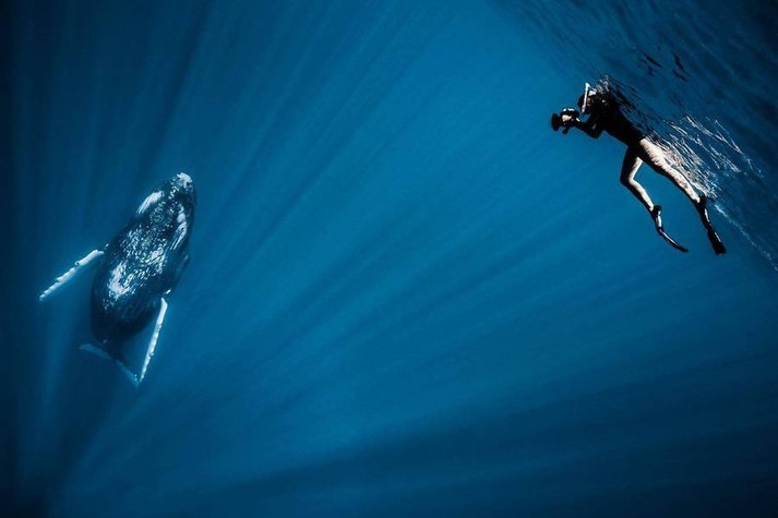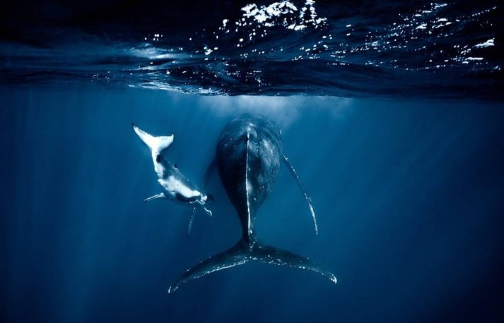 Она смогла подобраться к китам на очень близкое расстояние и стать свидетельницей удивительного действа – «первых шагов» новорожденных китов в водах Тихого океана.