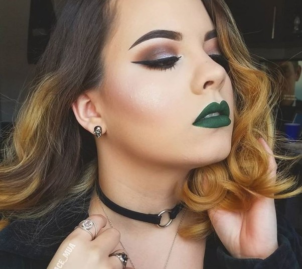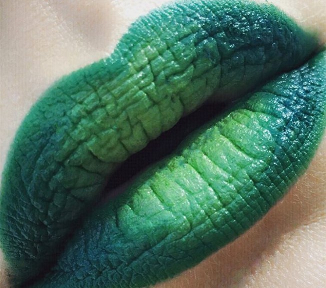 В макияже губ появился новый оригинальный тренд – помада зеленого цвета, пришедшая на смену темно-синему и неоновому фиолетовому.