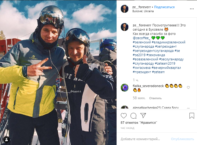 «Посмотрите!!! Это сегодня в Буковеле. Как всегда спасибо за фото @zecoffee», - подписали фото с Владимиром Зеленским.