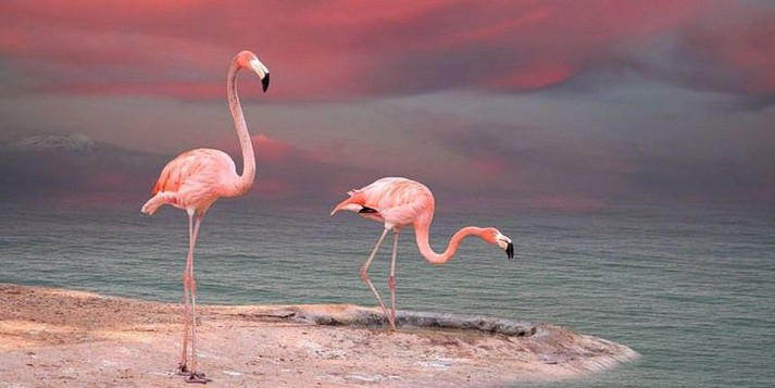 Составлена подборка наиболее впечатляющих фото розовых фламинго