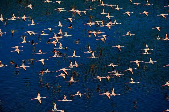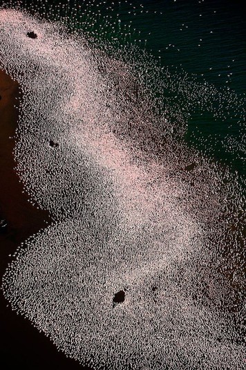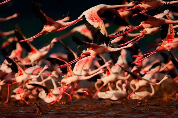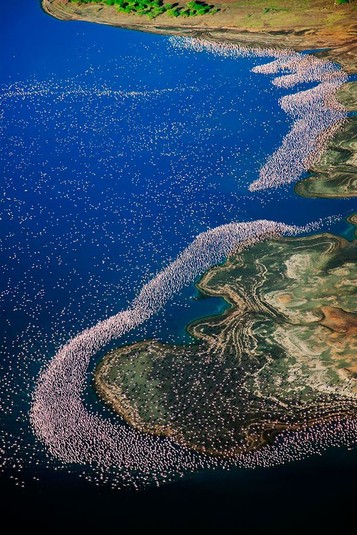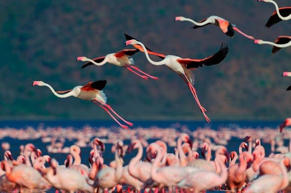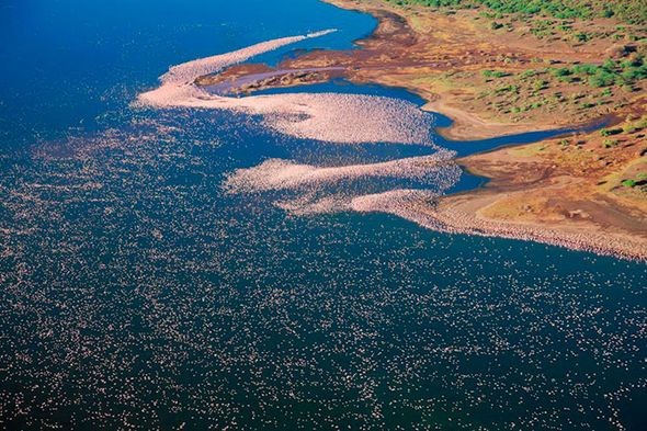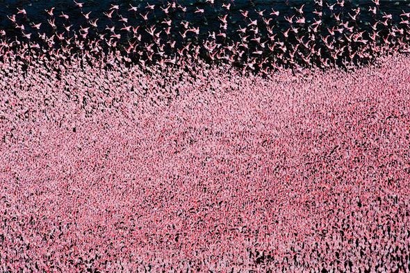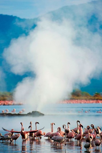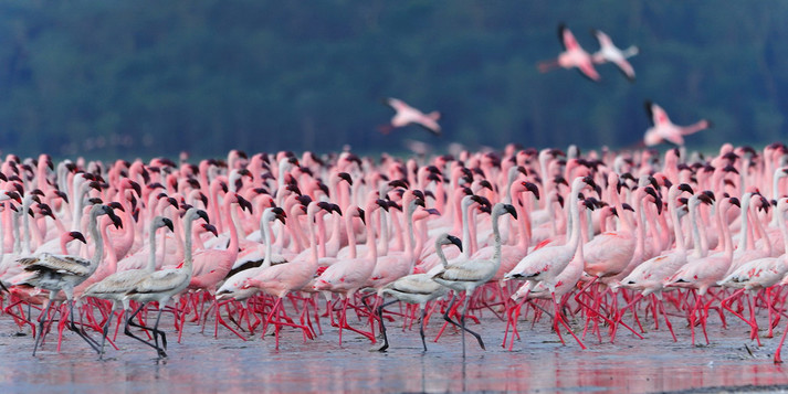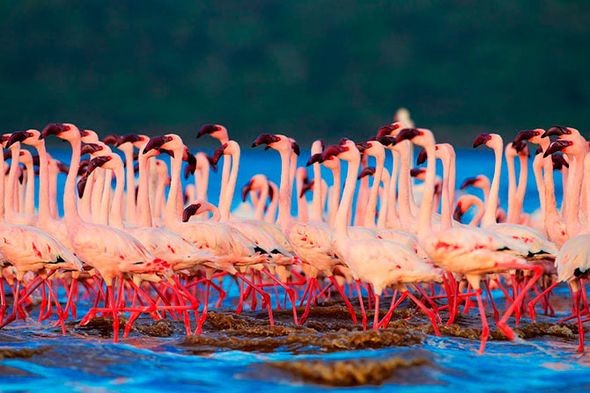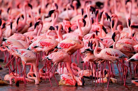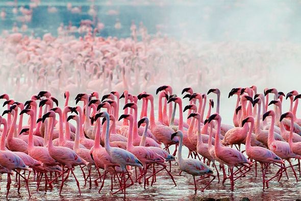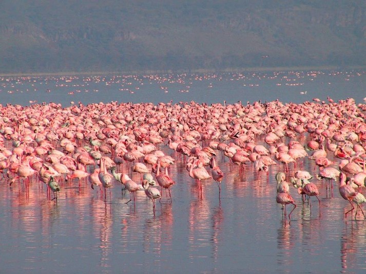Проходит время и непригодные для многих представителей животного мира воды озера и пыльные берега словно преображаются. Практически вся их поверхность приобретает розоватый оттенок, а в воздухе отчетливо слышатся миллионы пронзительных птичьих криков. Словно живое розовое одеяло покрывает воды озера Накуру.