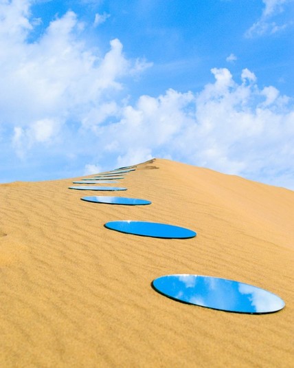 Ширин Абединирад – автор интереснейших инсталляций с применением зеркал, в которых они символизируют важнейшие динамичные составляющие окружающей среды – небо, воду, ветер, песок