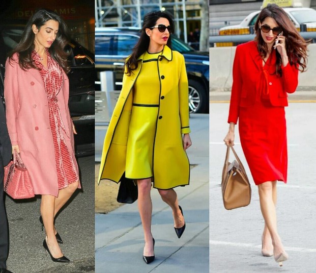 Супруга знаменитого голливудского актера Джорджа Клуни Амаль, которая занимается юридической деятельностью в США, отдает предпочтение сдержанным деловым нарядам. Она мастерски сочетает элементы изысканных платьев с лаконичными фасонами. Кроме элегантного наряда Амаль Клуни демонстрирует стройную фигуру.