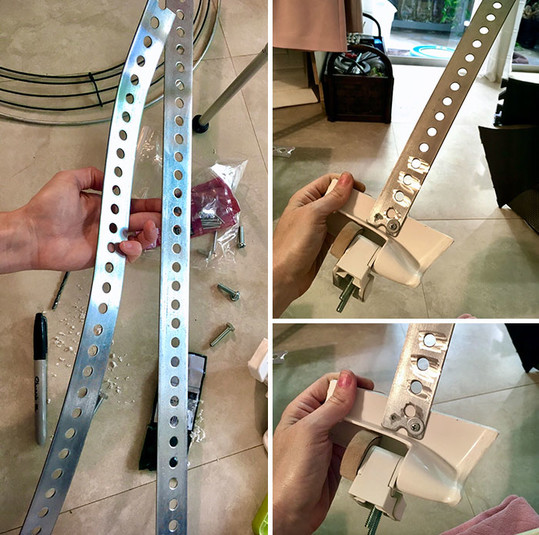 «Затем срезала большую часть пластиковой крышки, чтобы я могла добавить шарнирные рычаги. Они должны были иметь некоторый вес, чтобы движение работало. Перфорированная сталь была одним из лучших вариантов, которые я сделала во всем проекте. Она достаточно легкая, чтобы я могла согнуть и придать форму с помощью инструментов, а равномерно расположенные отверстия были удобной линейкой».