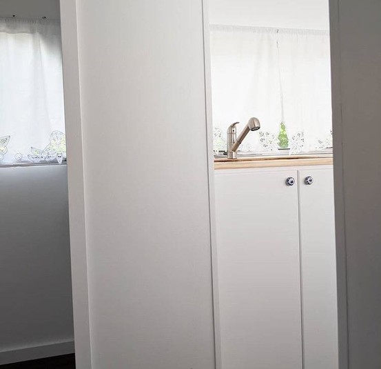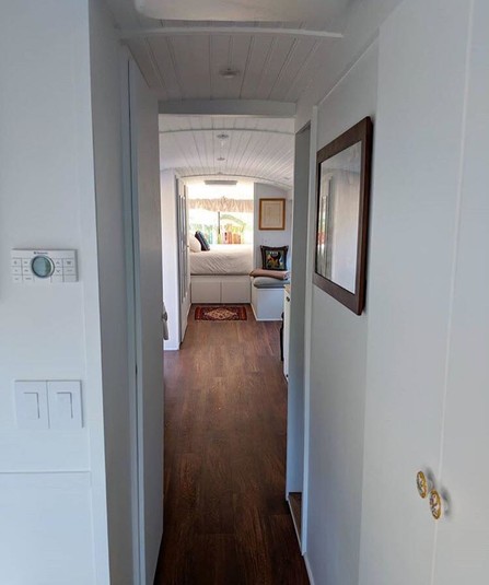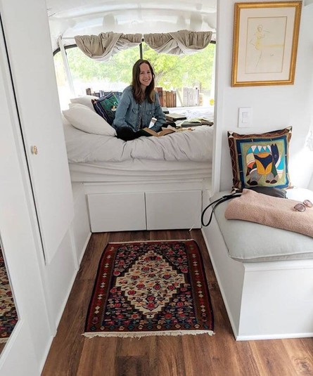 «Я сама люблю работать руками, но, к сожалению, у меня нет опыта работы с электричеством, сантехникой и другими аспектами, необходимыми этому дому. Плюс, надо было читывать то, что дом это - на колесах, а значит - предназначен для перемещения. Ну, и само помещение далеко не из самых простых, если учитывать углы и количество свободного пространства».