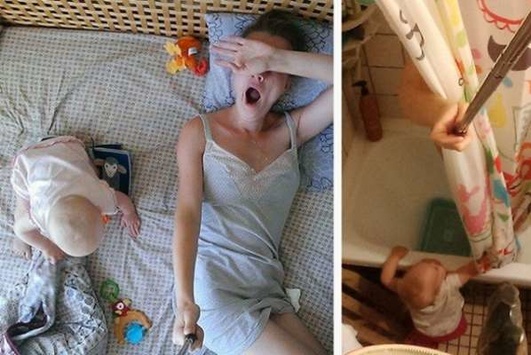 Женщина с помощью селфи-монопода запечатлела, что это такое — быть мамой